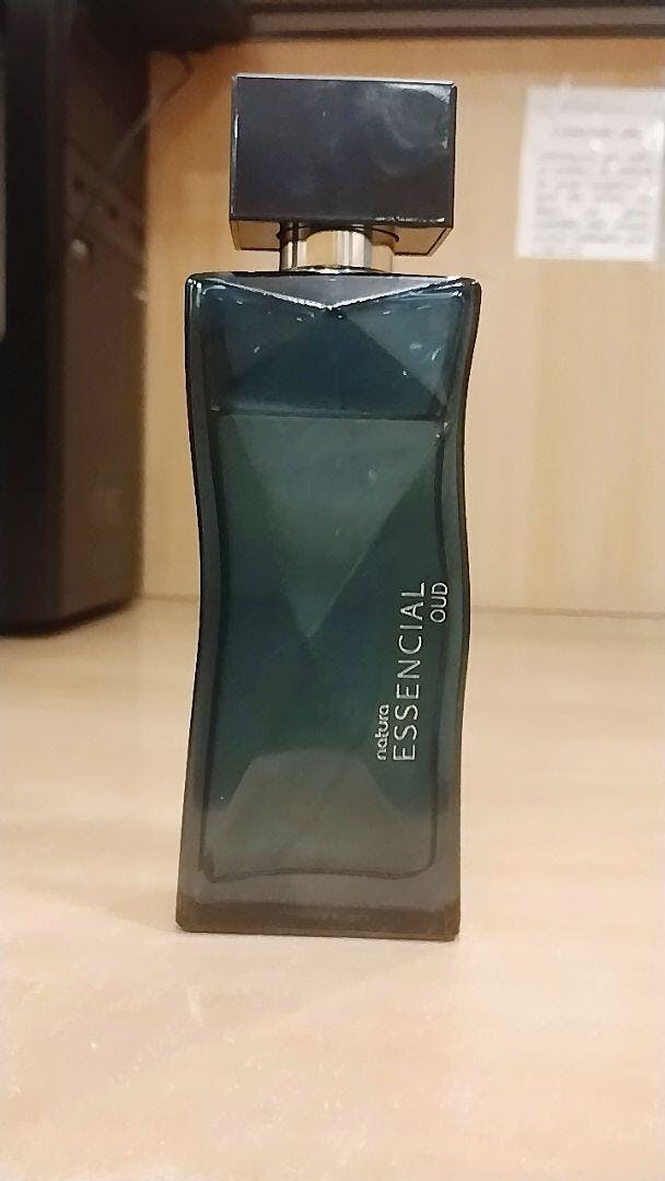 O fundo revela a opulência do Oud, a madeira mais nobre do mundo, com sândalo e patchouli.